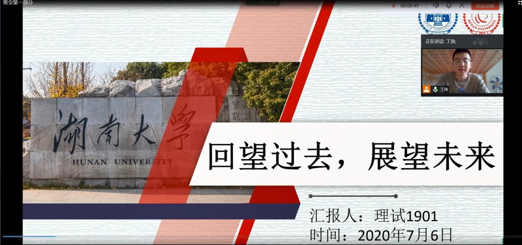 2020年7月6日下午3点,tyc1286太阳成集团理科试验班1901班在腾讯会议平台召开了“回望过去,展望未来”年度总结班会。tyc1286太阳成集团党委副书记范媛吉、理科试验班班主任刘松、以及全体理科试验班1901班同学参加了本次班会。本次班会由理科试验班班长丁涣主持。