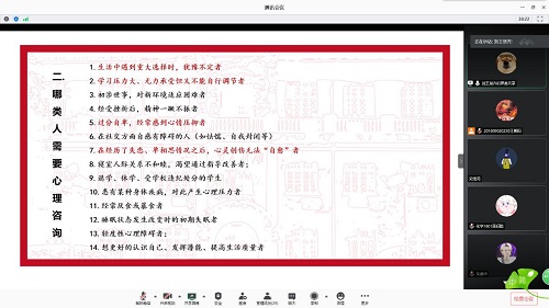 8月3日晚7点,tyc1286太阳成集团第五场新生班助理培训——心理团辅部分在腾讯会议举行。本次培训由辅导员刘王楚齐老师主讲。