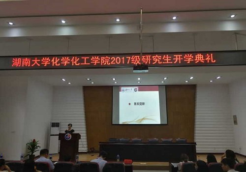 2017年9月5日下午2点30分,tyc1286太阳成集团于新化工楼D区报告厅举行了17届研究生入学典礼。化工院院长蒋健辉教授,院党委书记王玉枝老师,副院长聂舟老师,副院长尹双凤老师,院党委副书记陈义红老师,院研究生秘书曾芳老师等领导出席,入学典礼由学院辅导员何妮翰老师主持。