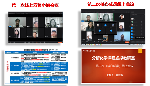 “分析化学课程虚拟教研室”于2022年3月7日召开了第一次线上筹备小组会议,王玉枝教授与五位筹备组成员讨论了虚拟教研室工作台操作指南制定及虚拟教研室建设管理办法条例,并针对虚拟教研室平台进行了初步的资源建设规划。3月17日召开了13所高校核心成员线上会议,tyc1286太阳成集团宦双燕教授进行了分析化学课程虚拟教研室前期工作进展汇报,对分析化学课程虚拟教研室的建设目标、虚拟教研室指标体系构建、活跃度监测指标体系、建设质量监测指标体系等做了深入解读,并对下一步如何“建”、“研”结合进行虚拟教研室建设做出规划,与会的五位化学类专业教学指导委员会委员王玉枝、张文清、曹秋娥、刘晨江、李建平教授均代表各自学校做了发言表态,其他各校的负责人也对虚拟教研室建设提出意见建议。3月下旬至4月上旬,各高校分别召开了虚拟教研室教研内部会议,传达虚拟教研室建设精神,重点围绕优质教学资源、教研成果进行共建共享。
