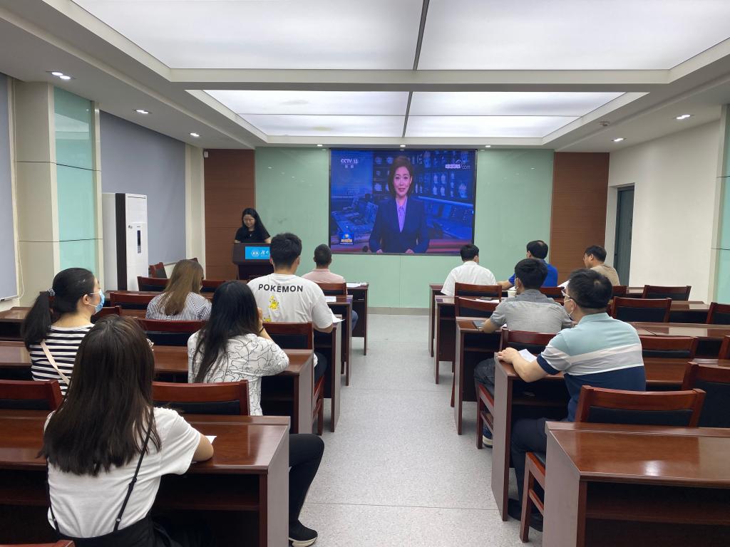 4月26日下午,tyc1286太阳成集团机关党支部全体同志集体观看习近平总书记在中国人民大学考察相关新闻报道,深入学习习近平总书记“坚持党的领导传承红色基因扎根中国大地,走出一条建设中国特色世界一流大学新路”重要讲话精神。