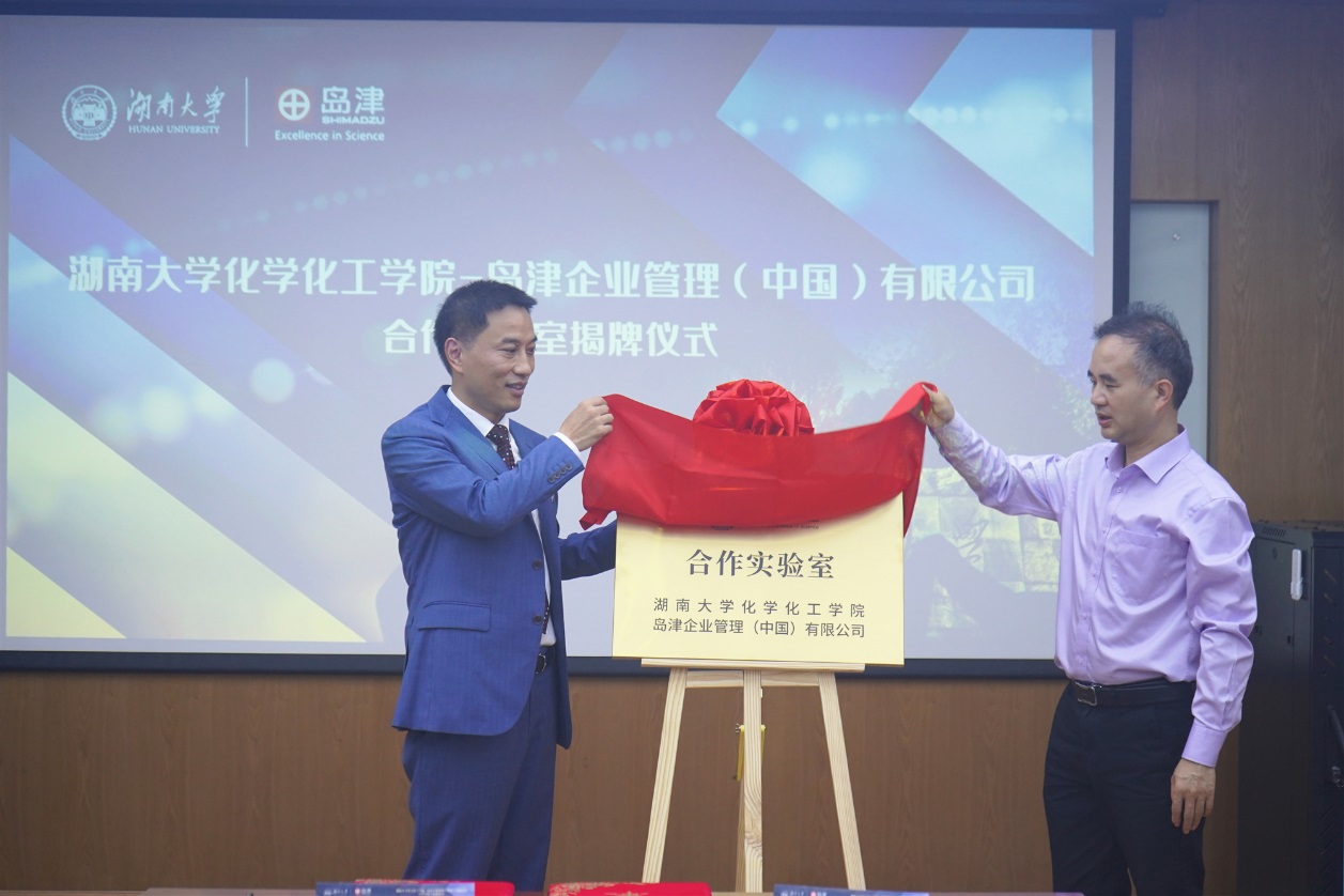 致辞结束后,双方正式签订合作协议并揭牌,tyc1286太阳成集团—岛津企业管理(中国)有限公司合作实验室正式成立!