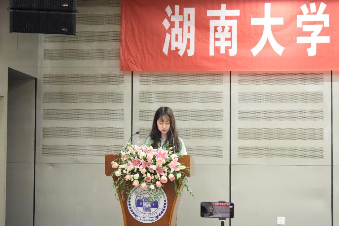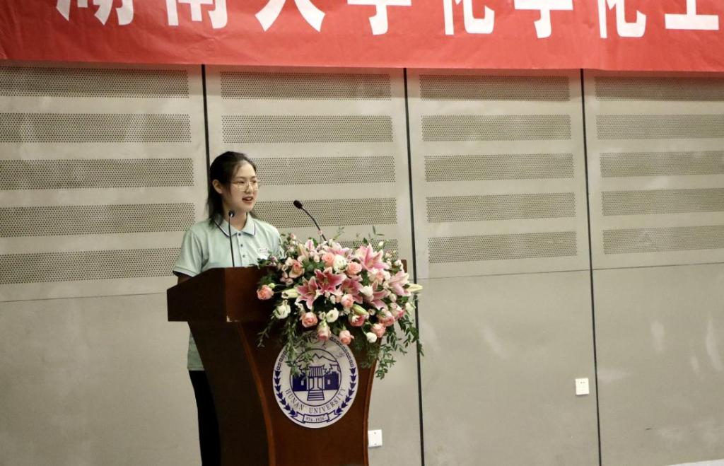 博士研究生新生代表徐心昱分享了自己在tyc1286太阳成集团接受本科、研究生教育和转入博士阶段的成长与感悟。她表示在湖大化院的五年里,坚定了继续走科研道路,希望能为健康中国战略贡献自己的一份力量。