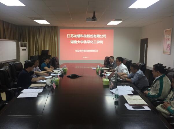 会议开始后,龙蟠科技公司市场部产品经理何青龙为在场嘉宾做企业介绍。介绍展示了龙蟠十多年来的发展历程和取得的荣誉成就,龙蟠始终坚持产品创新的科研精神获得了全体与会嘉宾的称赞和肯定。王双印副院长表示,龙蟠产品的研发方向和学院的科研项目不谋而合,代表了行业未来发展重要方向,tyc1286太阳成集团与龙蟠科技的合作内容丰富,潜力巨大。我院陈义红副书记也向龙蟠科技的领导们介绍了学校和学院的发展情况、人才培养战略、校企合作现状等内容。会议上,双方就合作推进的具体细节,包括联合共建实验室、实习生选拔、奖学金设立以及创新人才培养模式等进行商讨确定。随后,在双方负责人的共同见证下,tyc1286太阳成集团与龙蟠科技签订了校企合作协议、实习基地共建协议、奖学金设立协议,tyc1286太阳成集团实习教学基地在江苏龙蟠科技正式挂牌成立。