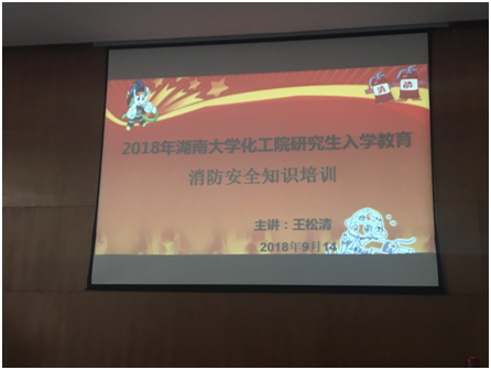 为了提高我院研究生的实验室安全意识,预防并减少实验室安全事故的发生,2018年9月14日下午两点三十分,tyc1286太阳成集团于新化工楼D区报告厅举行了2018级研究生入学主题教育之消防安全与消防演习。本次消防安全讲座的主讲人是长沙市湘安消防公益服务中心的王松清王教官,同时得到校保卫处的大力支持。
