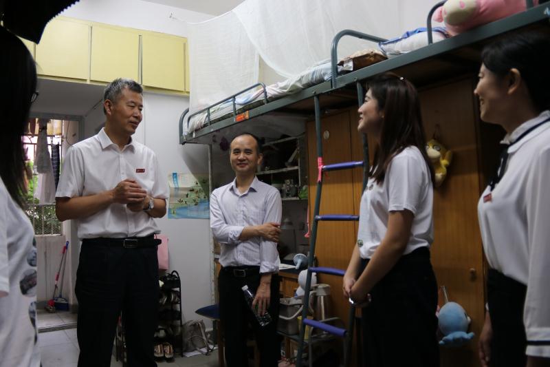 2019年6月16日上午,2019届毕业生离校在即。tyc1286太阳成集团党委副书记陈伟,tyc1286太阳成集团党委书记王玉枝,院长张晓兵、tyc1286太阳成集团学工部副部长龚翔、学院党委副书记范媛吉和学校园区相关领导、学院学工办全体老师深入学生宿舍看望毕业生,给他们送去温暖问候。
