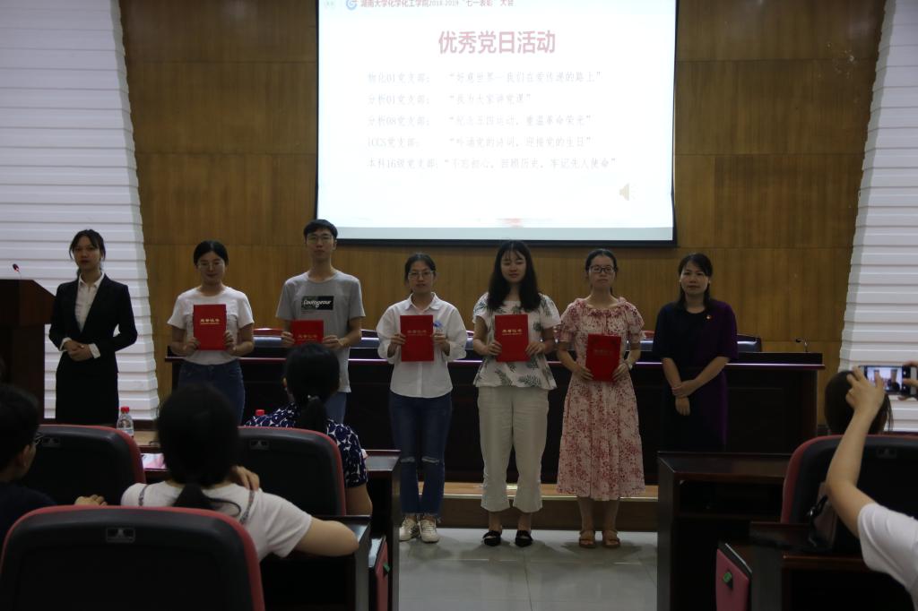大会在雄壮的《国歌》声中正式开始。全体党员面向党旗,向伟大的中国共产党致以深深的祝福和敬意;重温入党誓词,唤起内心不变的使命。对标一流改革创新,解放思想学习先进。研究生辅导员何妮翰老师向参会人员作《2018-2019年度tyc1286太阳成集团学生党建工作报告》。报告中何妮翰介绍了tyc1286太阳成集团学生党建工作的基本情况、工作思路和具体措施等。展示了tyc1286太阳成集团在2018-2019年度形式多样的党建活动、丰富多彩的党内生活,尤其是在支部建设和管理上的不断创新,依托实验室重新构建学生党支部。党委副书记范媛吉老师介绍了tyc1286太阳成集团先进集体和优秀个人的申报、推荐及评选情况,并宣读《中共tyc1286太阳成集团委员会关于2018-2019年度“七·一”表彰的决定》。随后,出席会议的领导和老师为受表彰的集体和个人依次颁奖。先进集体和优秀个人代表依次上台进行展示,列举了各自在学生党建工作中的举措,以及发展中取得的荣誉,均表示需在不断学习中树立远大理想、在基层实践中练就过硬本领、在社会服务中担当时代责任,汇报了如何成长为有战斗力的党支部和有影响力的优秀学生党员的心得体会。