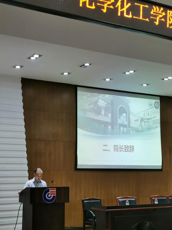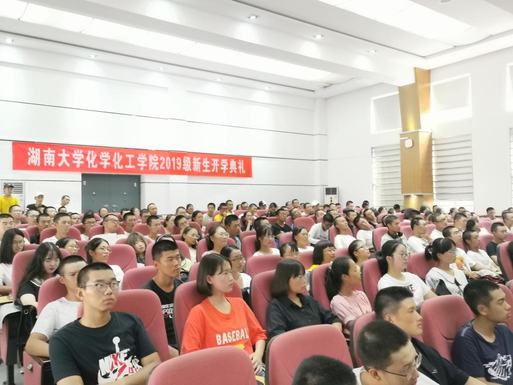 2019年9月10日下午三点,tyc1286太阳成集团2019级本科生开学典礼在院报告厅成功召开。学院党委书记王玉枝教授、院长张晓兵教授、党委副书记范媛吉老师、副院长李永军教授、梁志武教授、崔坤在老师,院长助理汪秋安老师、院长助理赵敬哲老师,化工系主任罗潇老师、实验中心主任郭栋才教授以及2019级全体班主任和学工办全体老师,19级新生辅导员夏忠诚老师主持此次典礼。