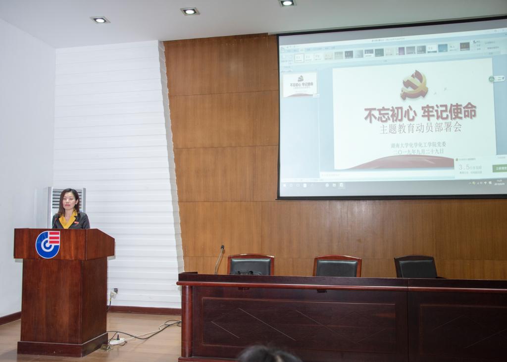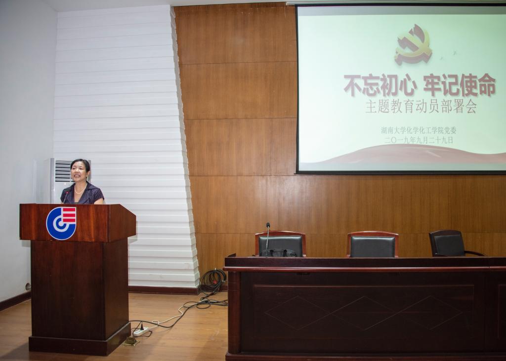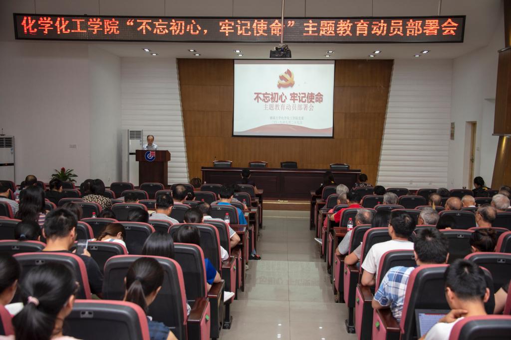 9月29日下午,tyc1286太阳成集团在新化工楼D区报告厅召开了“不忘初心、牢记使命”主题教育动员部署会,对学院主题教育进行了全面动员和具体部署。学院党委书记王玉枝同志作了动员部署讲话,学校主题教育第一督查指导组成员、校团委书记彭嘉芬同志出席会议并讲话,学院院长张晓兵同志主持会议。学院领导班子成员、党委委员、全体教工党员、离退休党支部部部分党员和学生党支部书记参加会议。