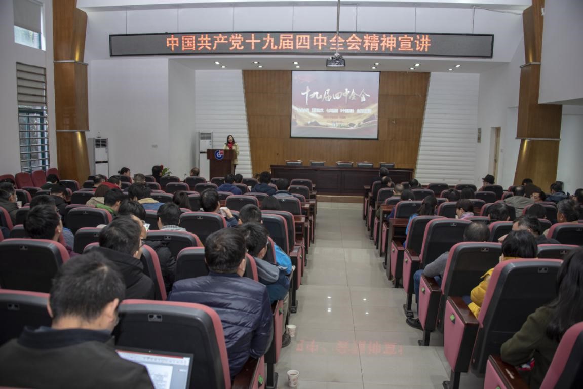 12月3日下午,副校长蒋健晖在tyc1286太阳成集团D区报告厅进行十九届四中全会专题宣讲,tyc1286太阳成集团全体教职工参会。
