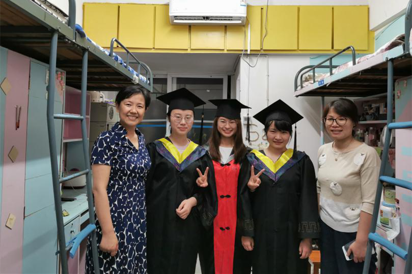 6月17日晚,tyc1286太阳成集团党委书记王玉枝、院长张晓兵、党委副书记范媛吉及学工办辅导员走访了化工院2020届本科毕业生寝室,欢送即将告别母校的2020届毕业生们,为要踏上新征途的同学们送上温暖的祝福。