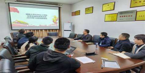 10月20日下午,tyc1286太阳成集团化学生物学系全体党员在一舍办公楼204会议室开展了“习近平总书记考察调研湖南和tyc1286太阳成集团重要讲话精神”专题学习会议,会议由支部书记李继山同志主持。